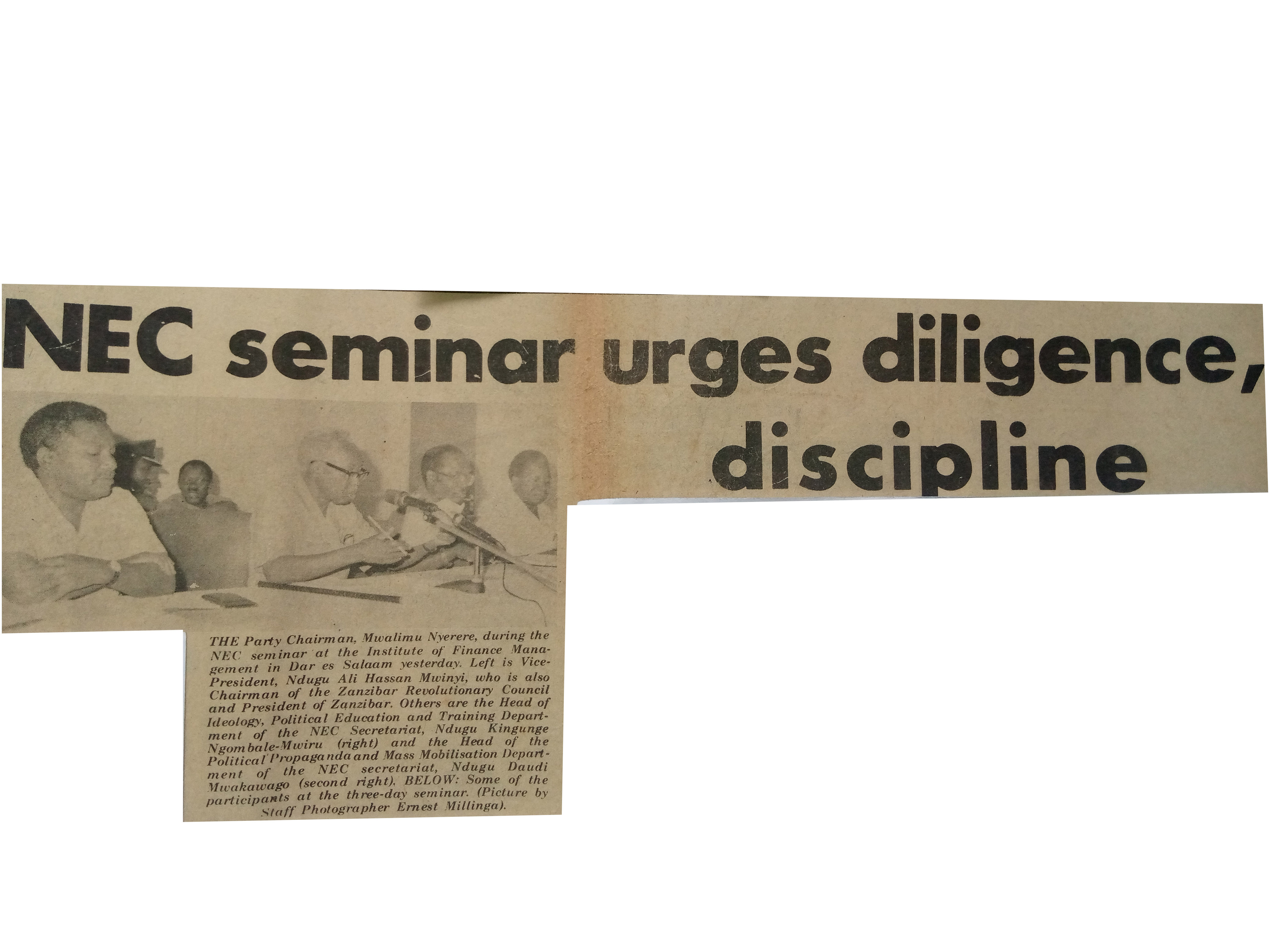 The party chairman, Mwalimu Nyerere during NEC seminer at Institute of Finance Management in Dar es salaam.