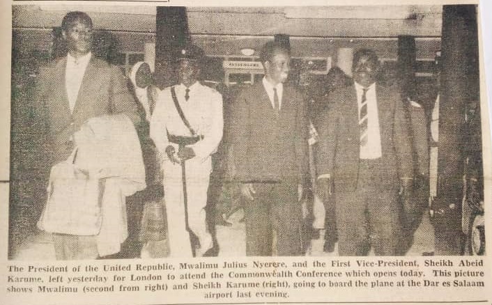 President Nyerere and the Vice-President Sheikh Abeid Karume left for London to attend the Commonwealth Conference