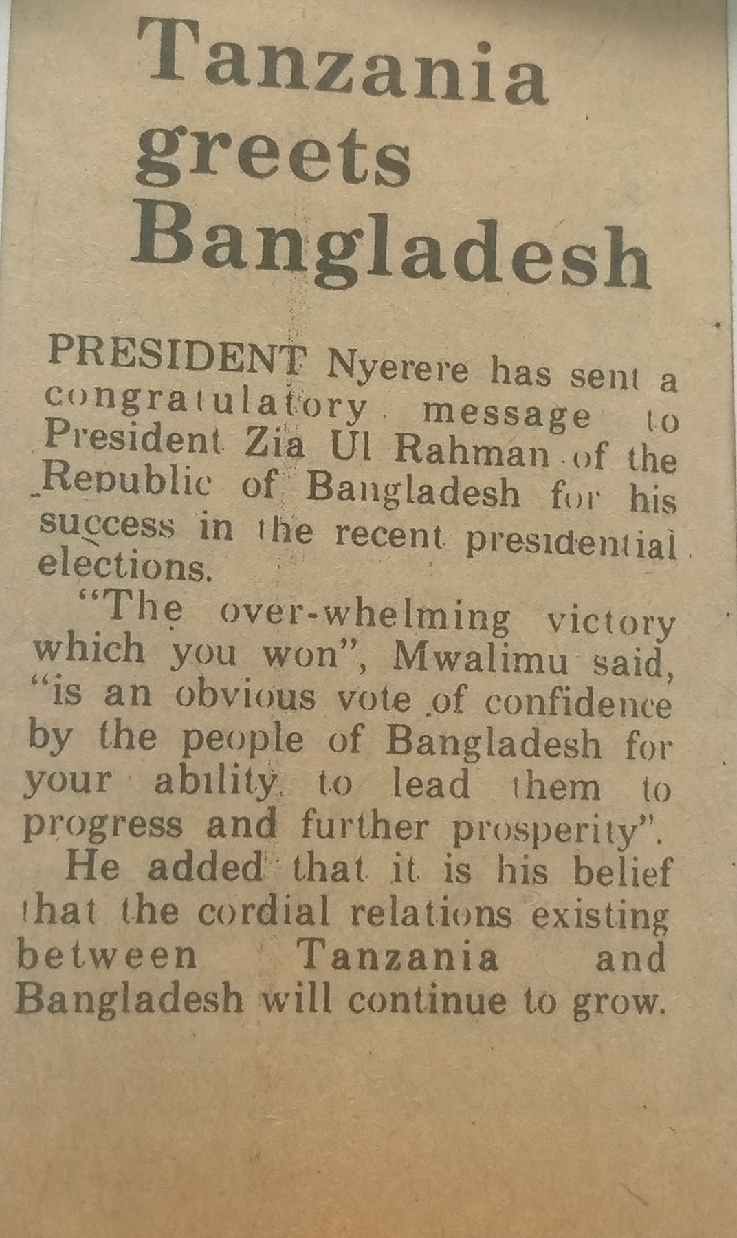 Tanzania greets Bangladesh (1978, June 16) Daily News,pp.1