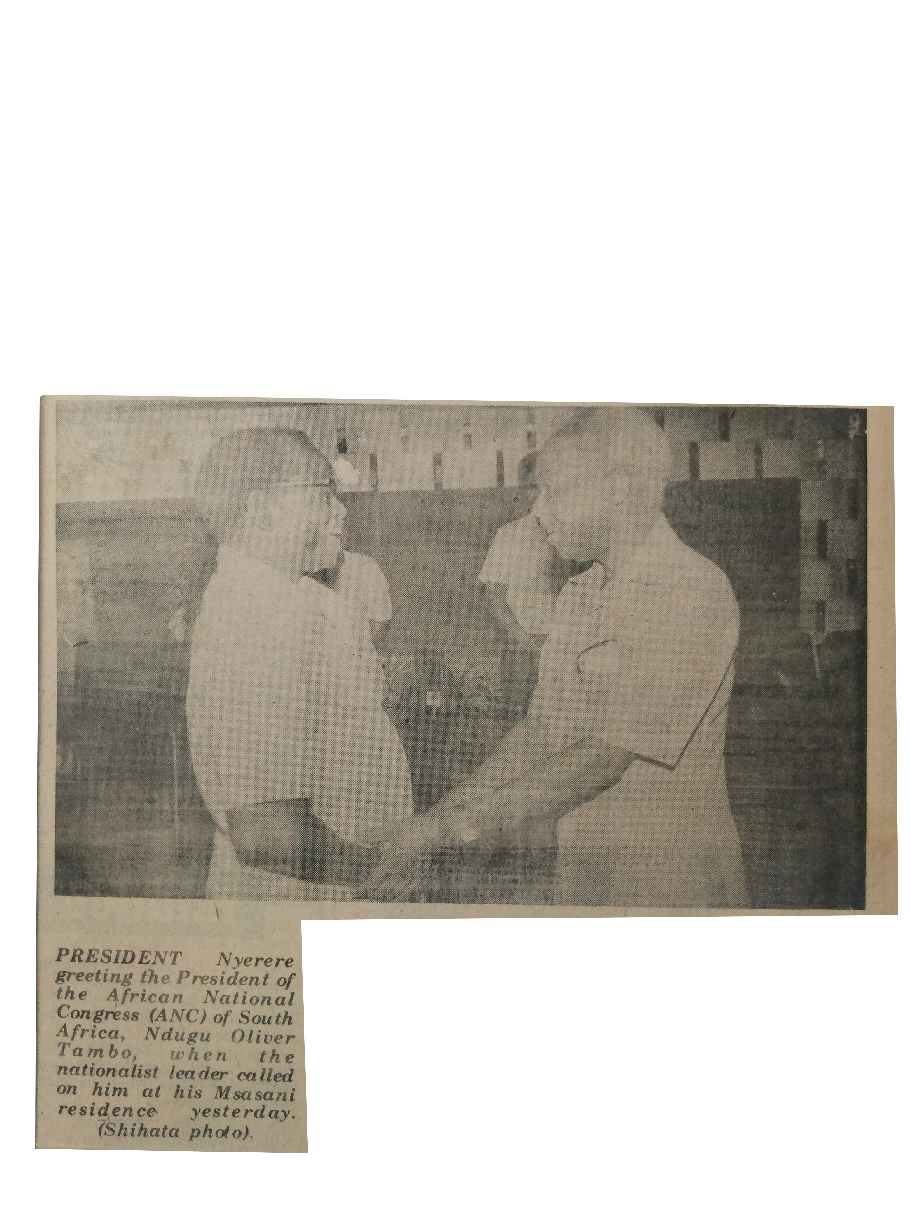 President Nyerere greeting the President of the African National Congress(ANC) of South Africa (1984, September 28). Daily News, pp.1