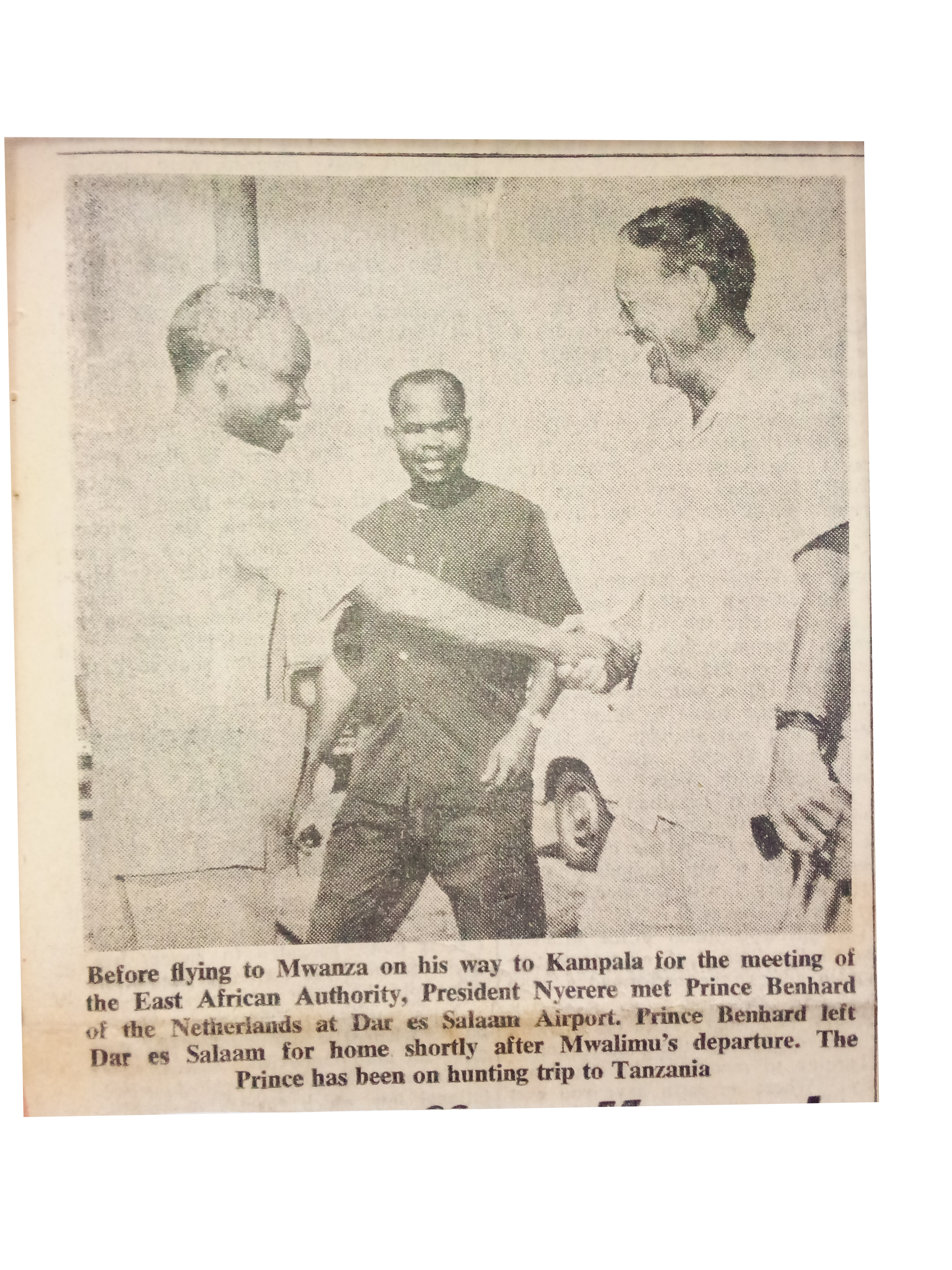 Before flying to Mwanza on his way to Kampala for the meeting of East African Authority, President Nyerere met Prince Benhard of the Netherlands at Dar es salaam Airport.