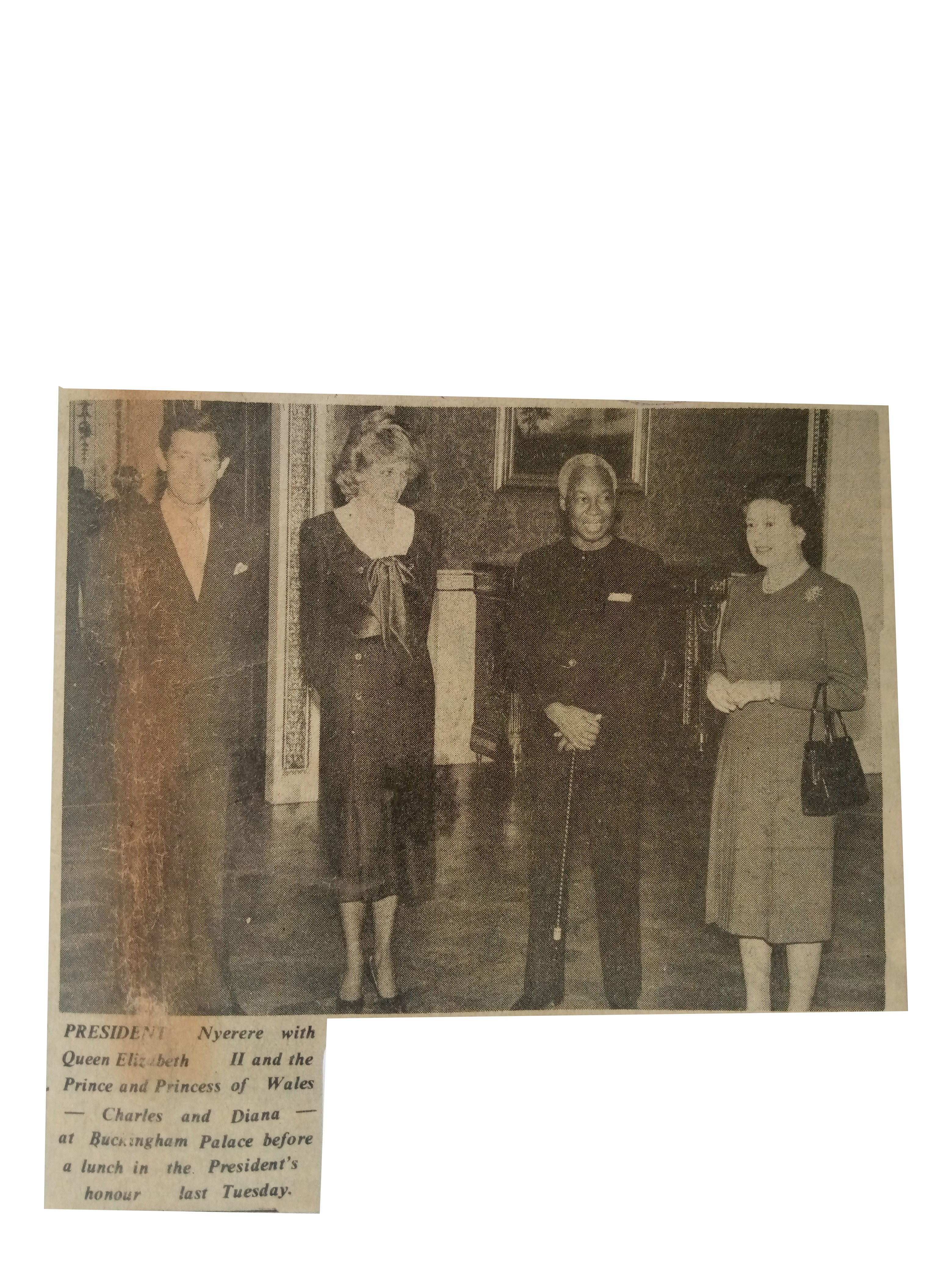 President Nyerere with Queen Elizabeth II and Prince and Princess of Wales(1985,May 23).Daily News,pp.1