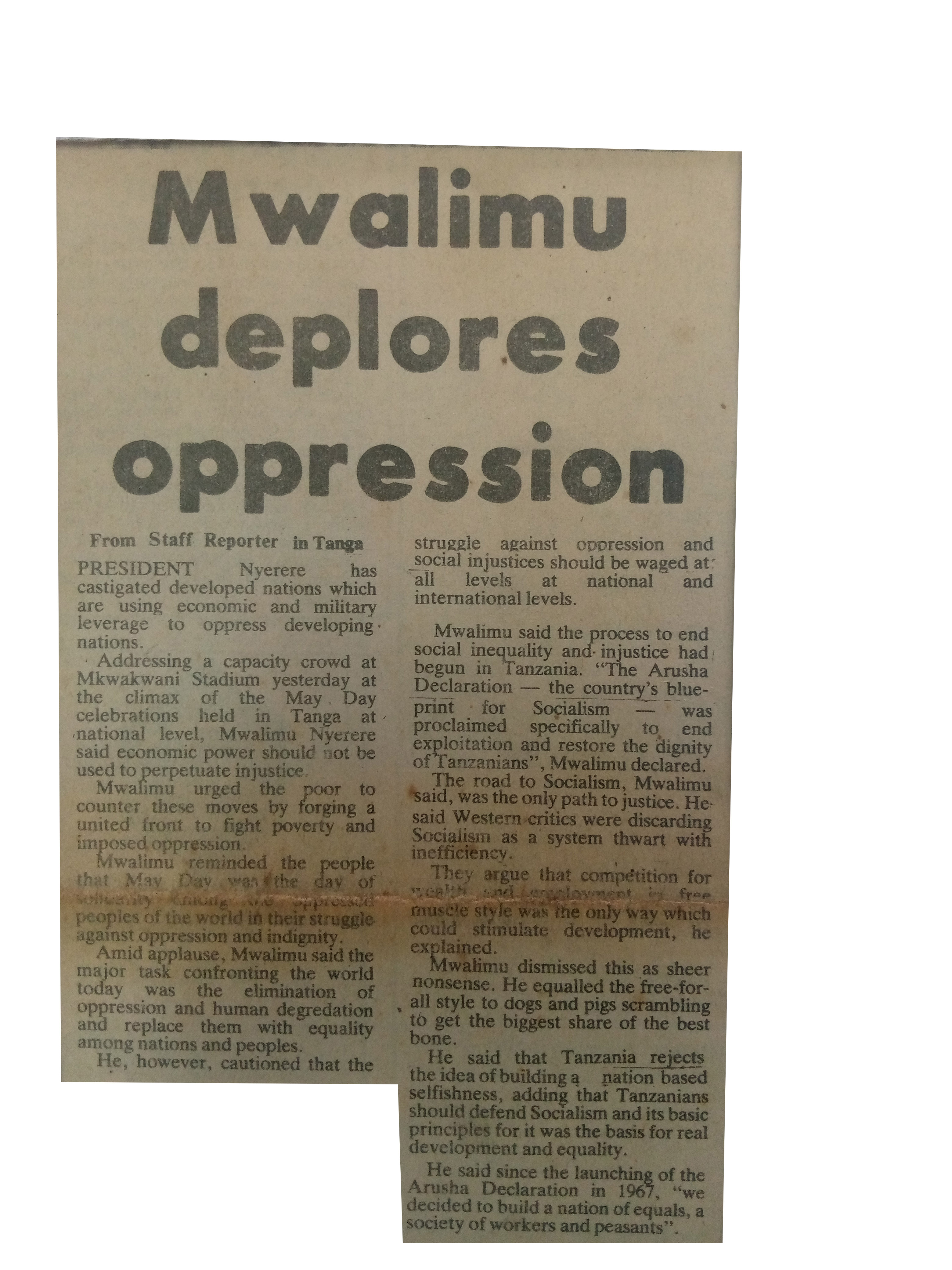 Mwalimu deplores oppression(1985,May 2).Daily News,pp.1