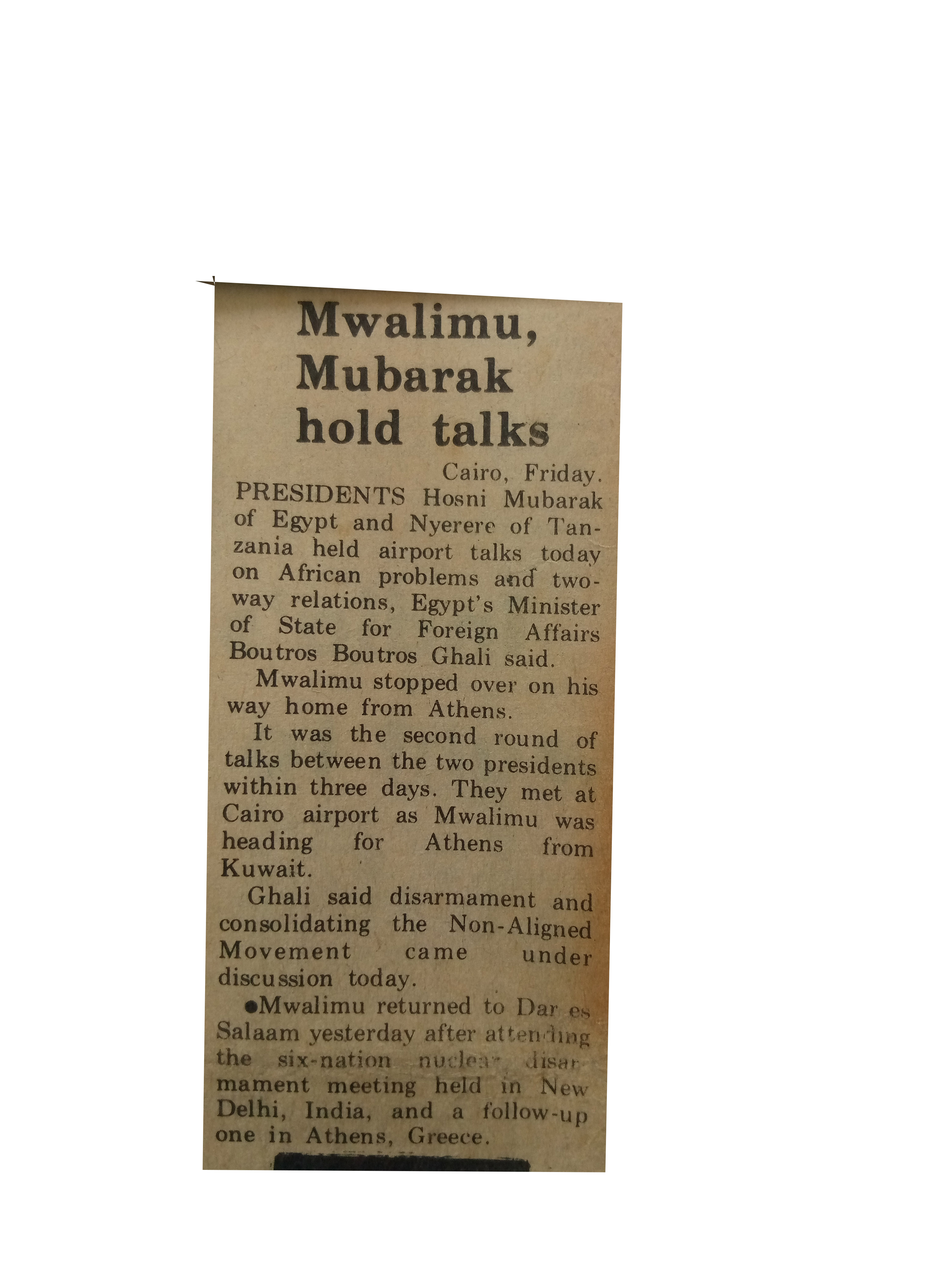 Mwalimu Mubarak hold talks(1984,february 2)Daily News, pp.1