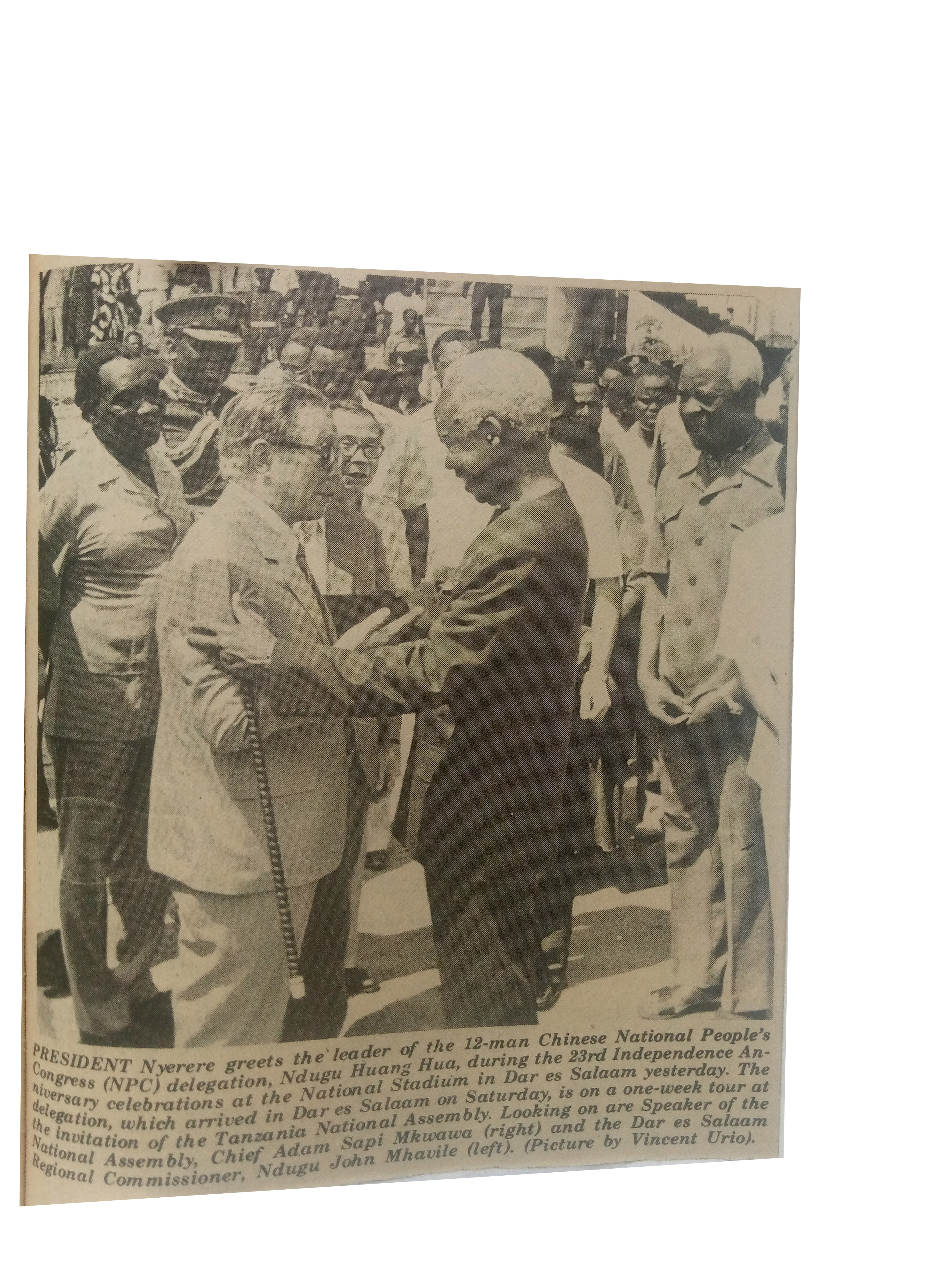 President Nyerere greets the leader of the 12-man (1984), Daily News.pp.3