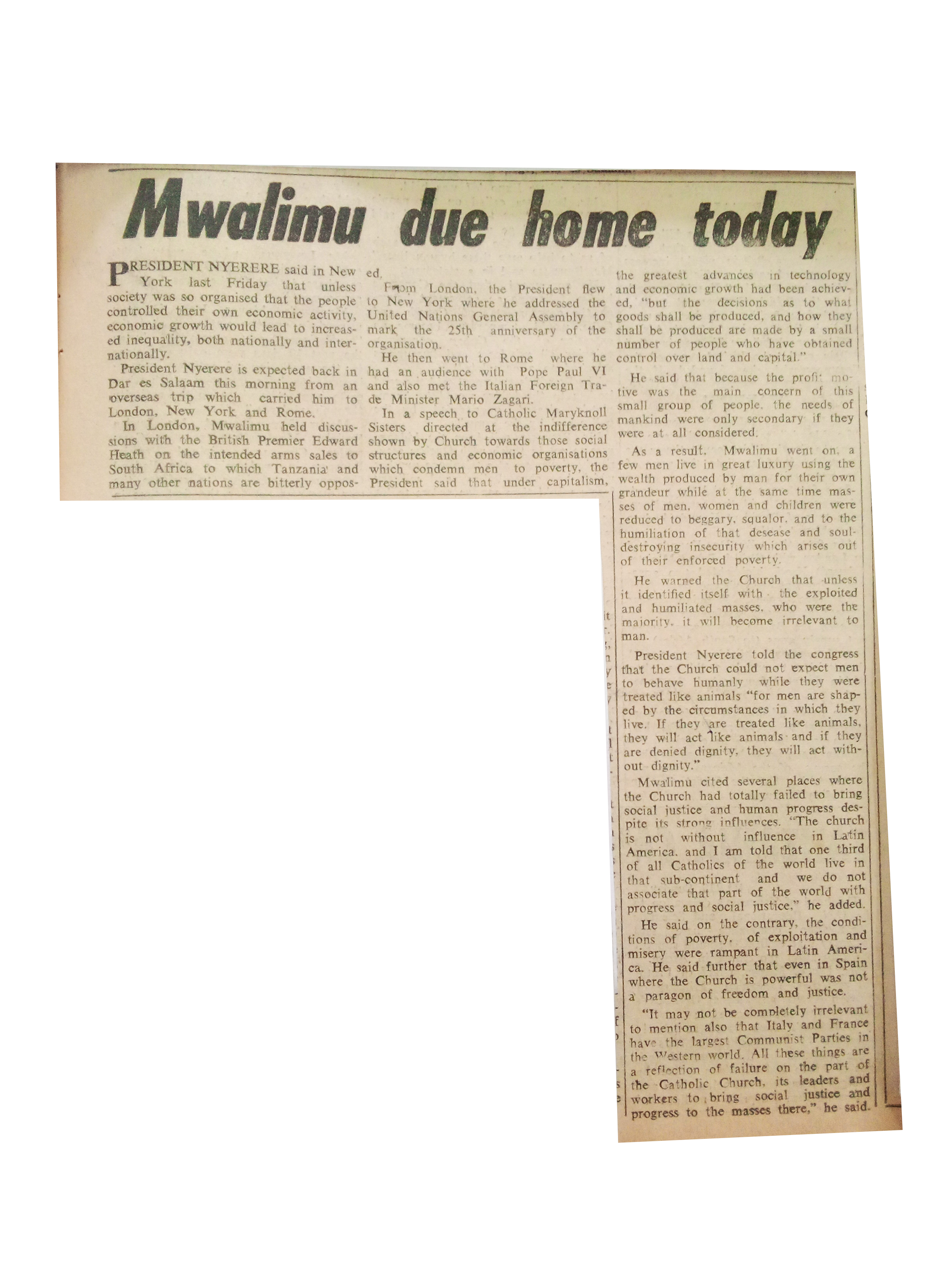 President Nyerere said in New York that unless society was to organized that people controlled their own economic activity, economic growth would lead to increased both nationality and internationally