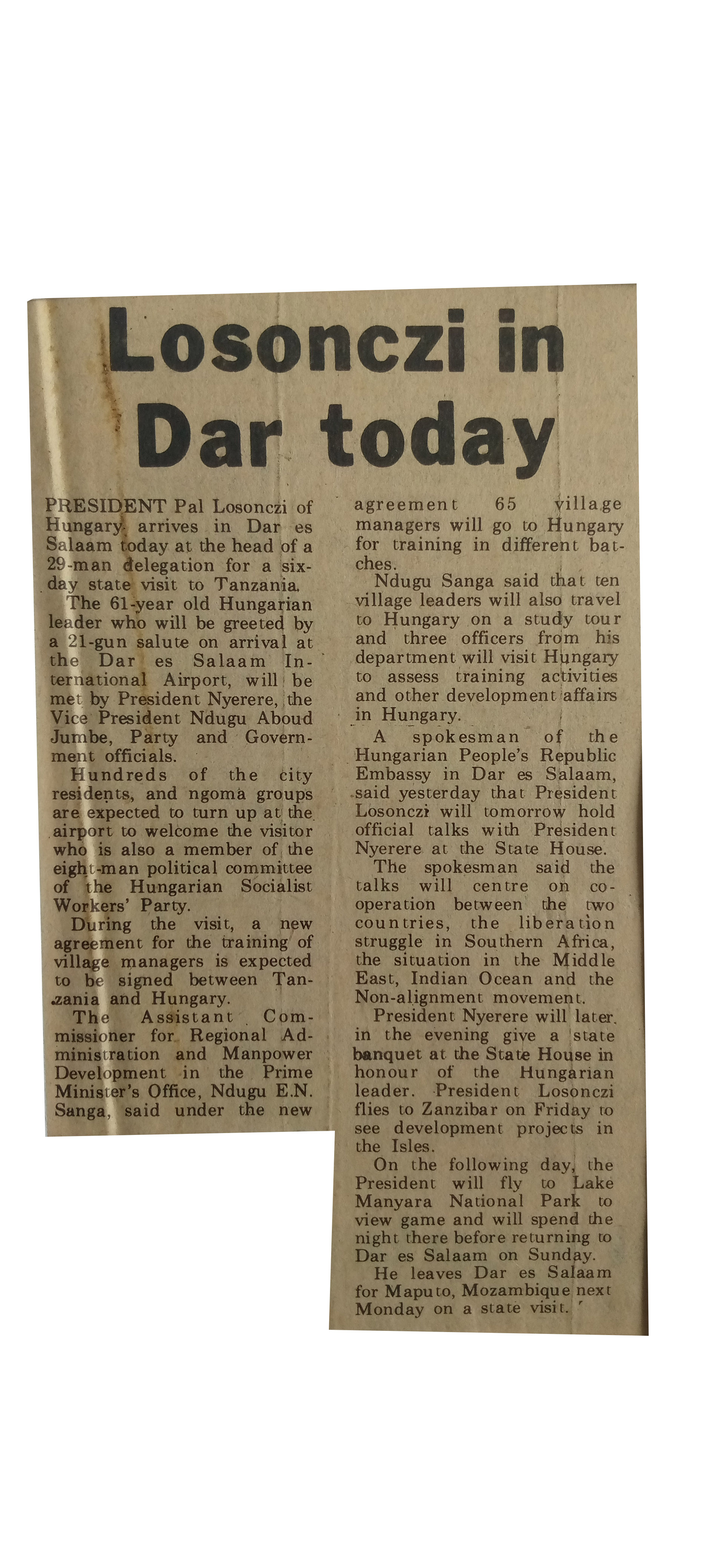 Losonczi in Dar today (1980,September 17) Daily News.pp.1