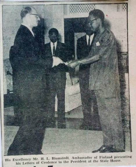 Ambassador of Finland presenting his letter of Credence to the President at the State House (1966, February 4) The nationalist, pp. 1