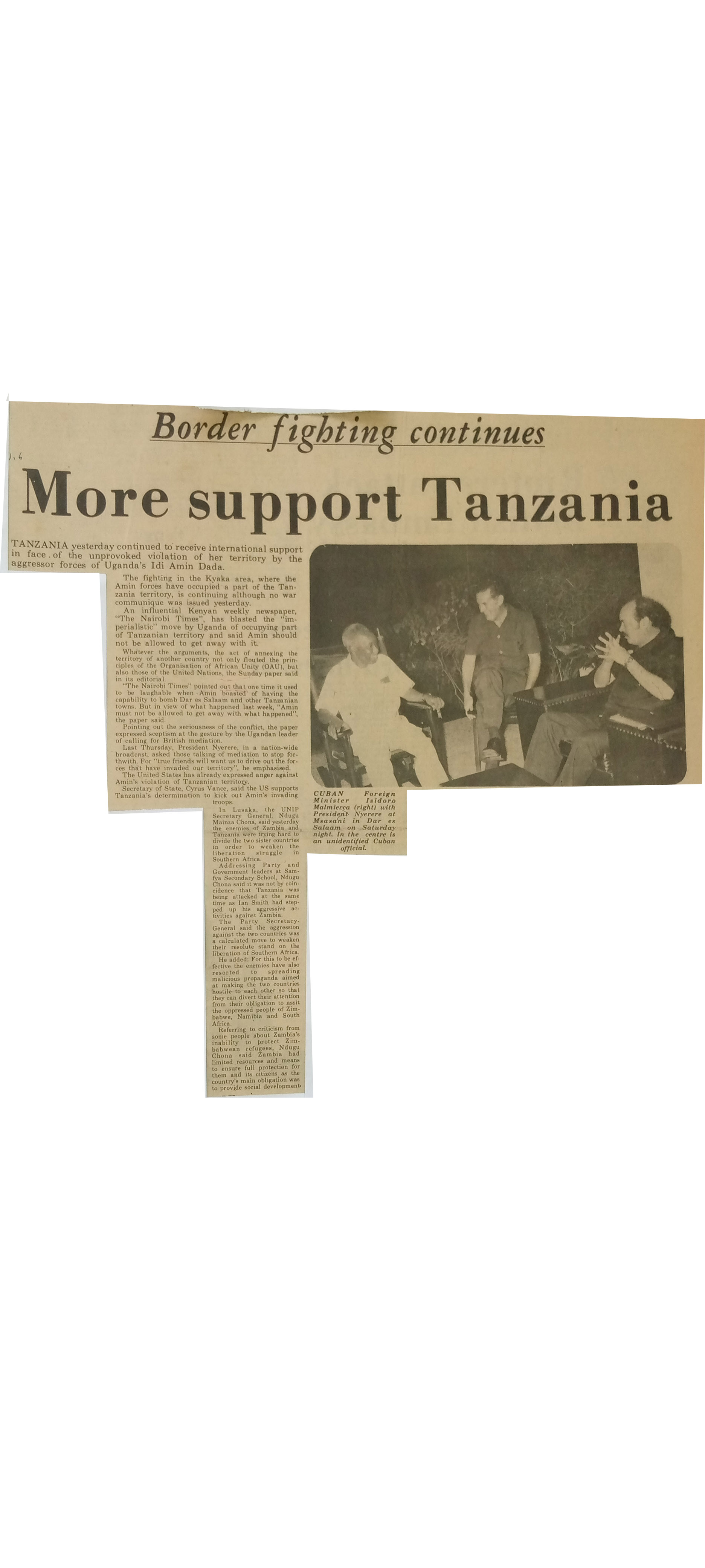 Nyerere J.K (1978 November 6) Border fighting continues: More support Tanzania, pp 1