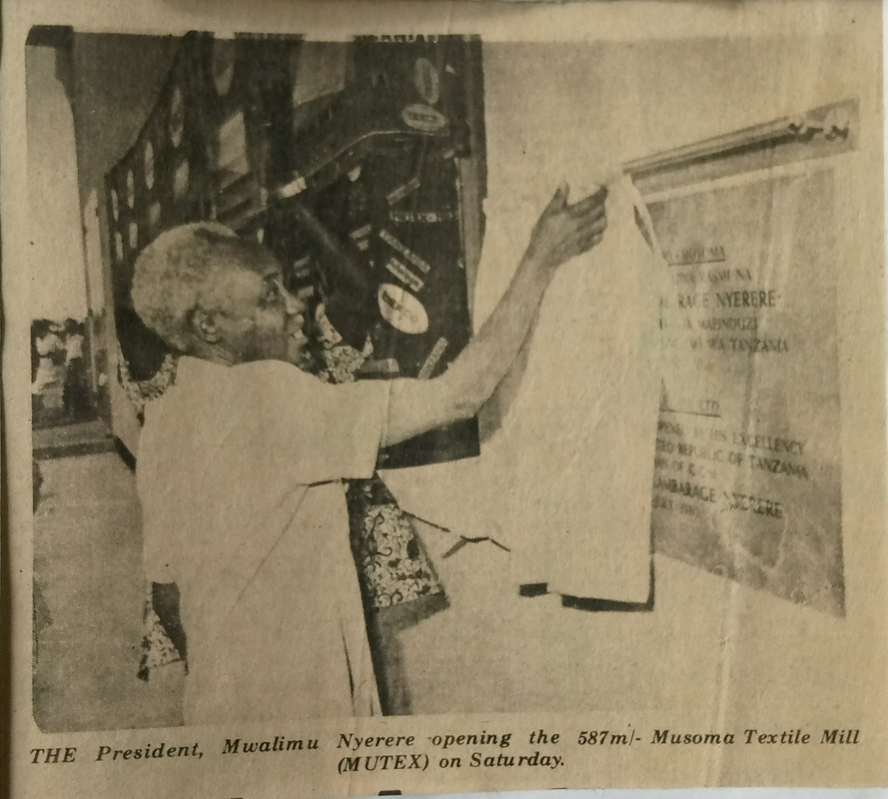 The President,Mwalimu Nyerere opening the 57m/-Musoma Textile Mill  (1980,July 28) Daily News.pp.1