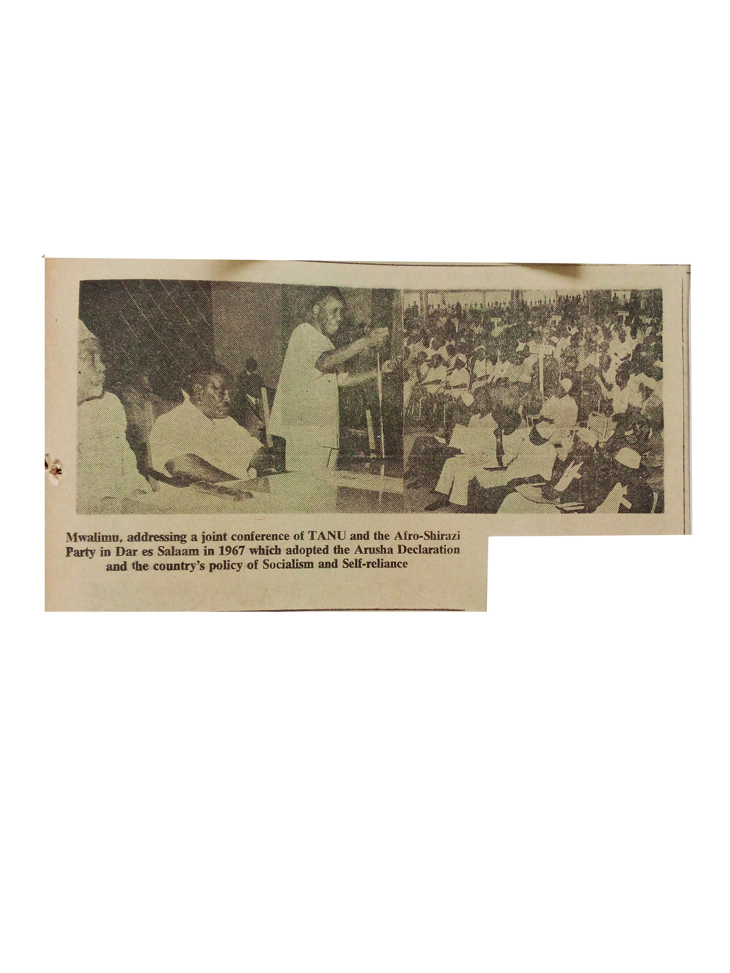 Mwalimu addressing a joint conference of TANU and the Afro-Shiraz Party in Dar es Salaam in 1967 which adopted the Arusha declaration and the country's policy of socialism and self-reliance.