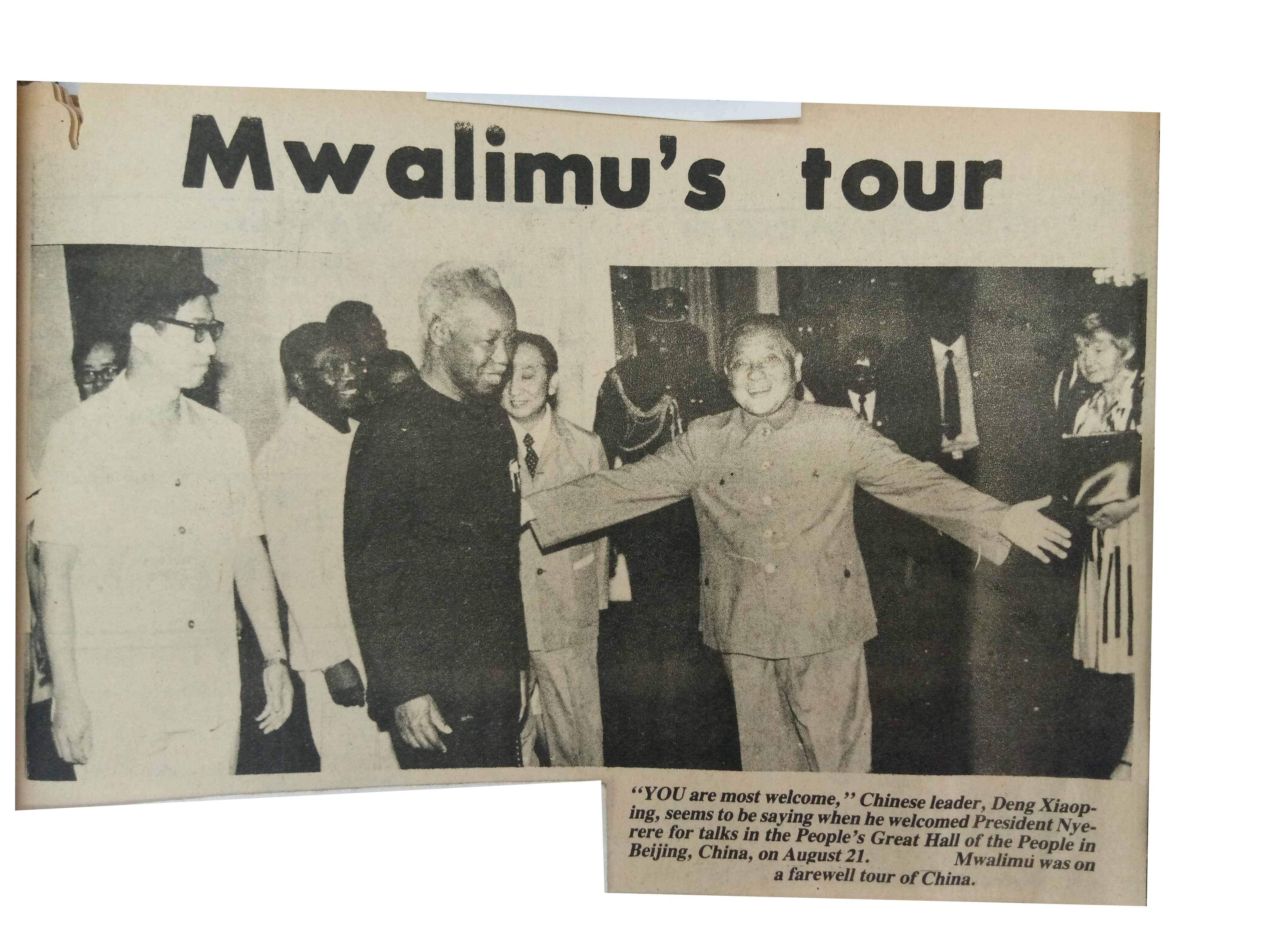 You are most welcome Chinese leader, Deng Xiaoping, seems to be saying when he welcomed President Nyerere for talks in the People's Great Hall of People in Beijing, China on August 21 Mwalimu was on a farewell tour of China.