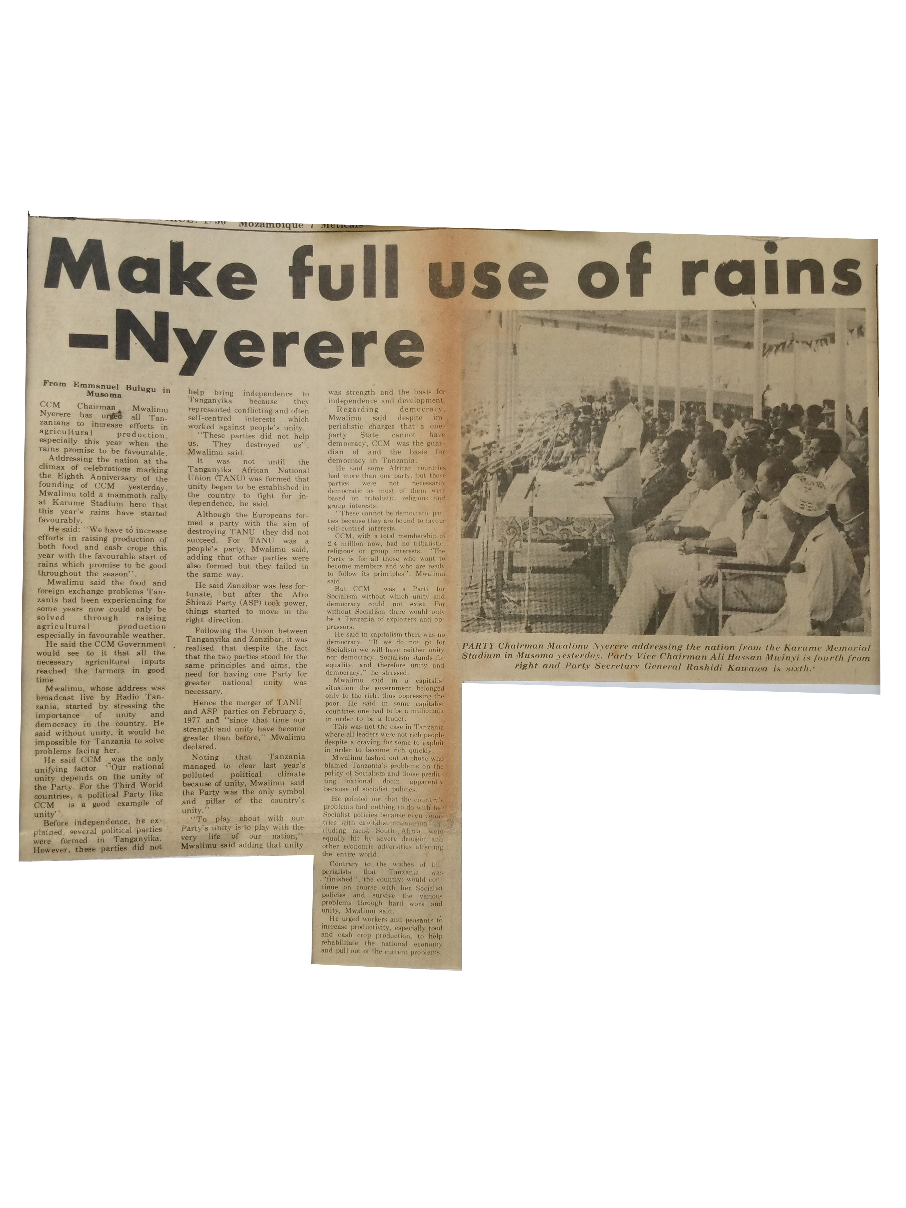 Make full use of rains-Nyerere (1985,February 6) Daily News.pp.1
