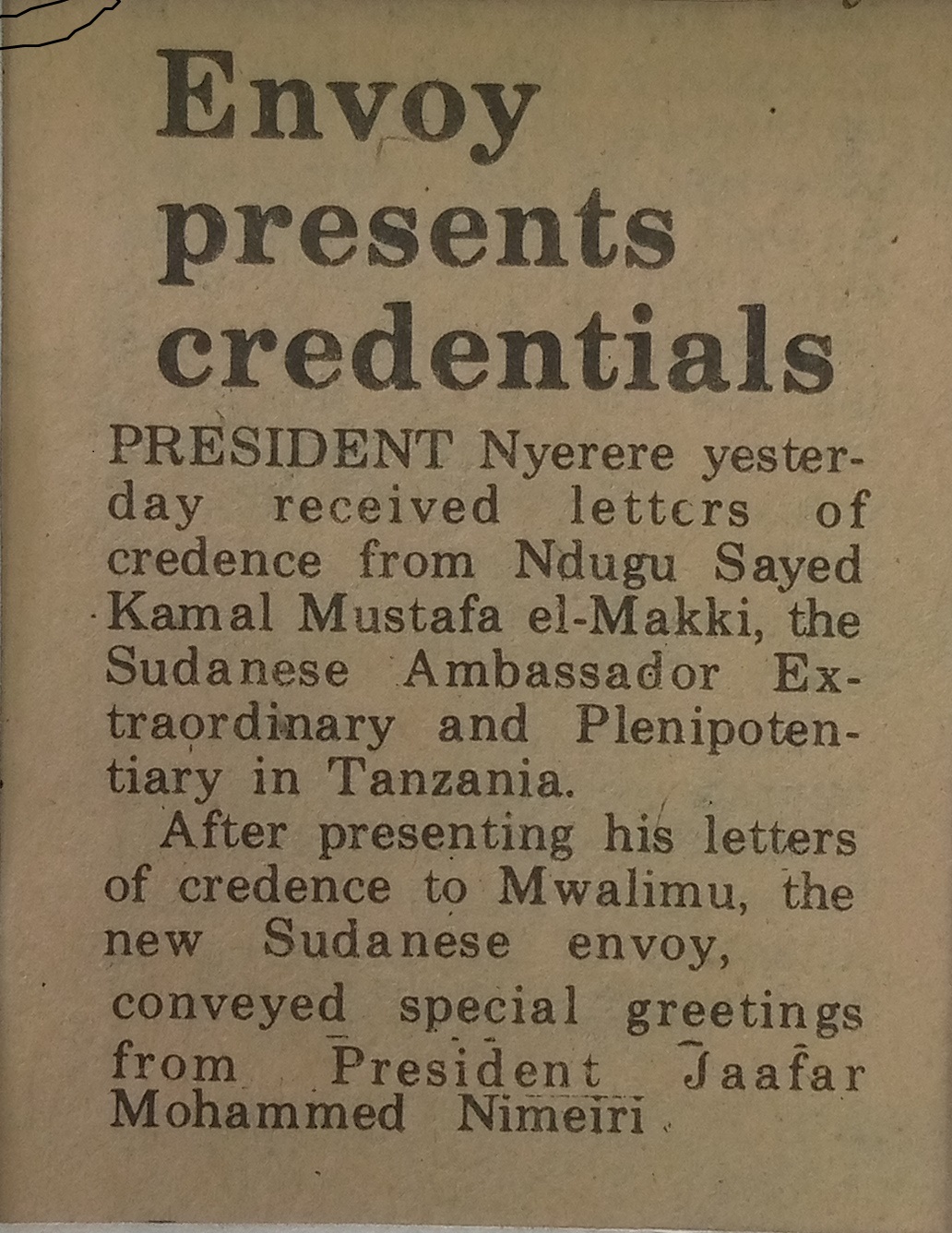 President Nyerere yesterday received letters of credence from Sayed Kamal Mustafa El-Makki, the Sudanese Ambassador Extraordinary and Plenipotentiary in Tanzania.